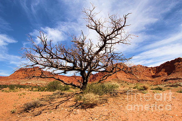 A dead tree succumbed to the harsh desert canyon environment at Capitol Reef National Park in Utah.