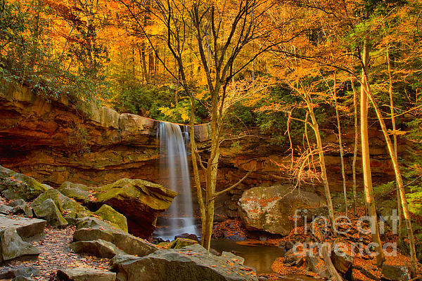 An Autumn Golden Canopy Of Color Creates A Beautiful Scene Over Cucumber Falls At Ohiopyle State Park In Fayette County Pennsylvania On A Cool Autumn... more