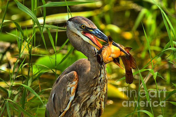 A Great Blue Heron Gives Off A Fiercely Intense Look After As It Ponders How To Consume A Freshly Caught Catfish At Everglades National Park In... more