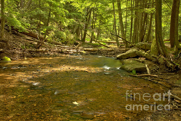 Tom's Run Flows Along The Edge Of The Cathedral Natural Area On A Cool Spring Day At Cook Forest State Park In Western Pennsylvania.