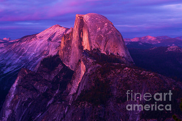 Half Dome Glows In A Purple Sunset At Yosemite National Park