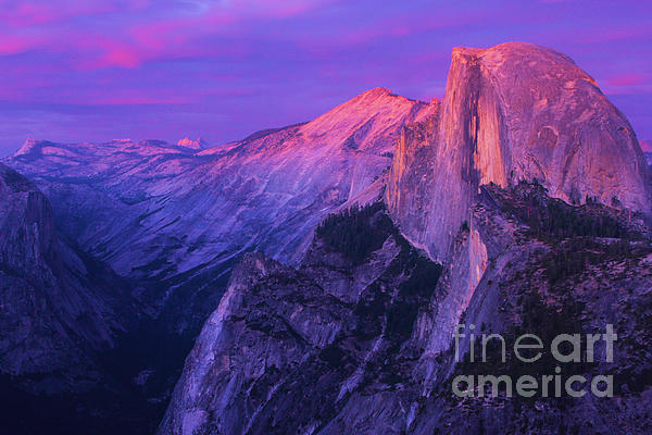 Sunset At Half Dome At Yosemite National Park.