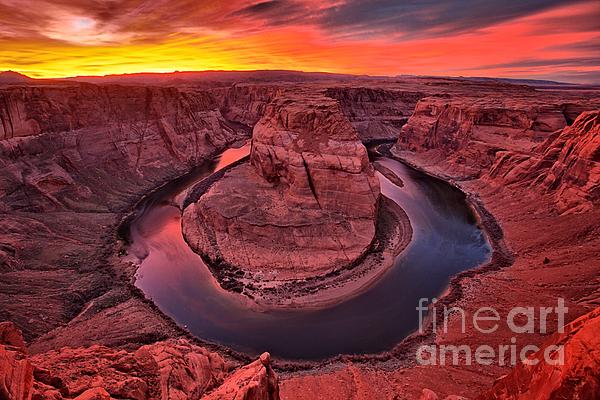 A Fiery Winter Sunset Lights Up The Canyon Walls And The Colorado River As It Flows Through Horseshoe Bend Near Lake Powell And Grand Canyon National... more