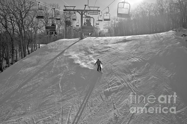 A Black And White View Of A Lone Skier Skiing Down Rivershot, A Black Diamond Expert Slope In The Pocono Mountains Of Eastern Pennsylvania At Jack Frost Ski Resort.