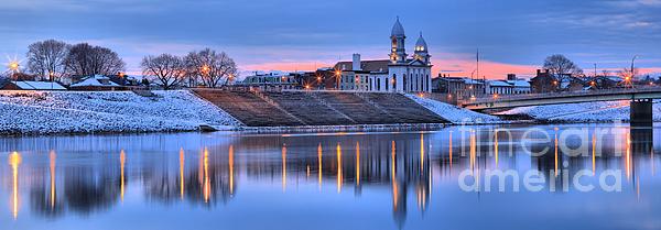 A Large Panoramic View Of The Clinton County Courthouse Reflecting In The Susquehanna River On A Cold Winter Evening As Just After Sunset In Lock... more
